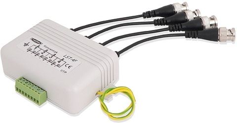 Separator LST-4F został zaprojektowany do małych instalacji telewizji przemysłowej, w celu ochrony kamer, rejestratorów oraz monitorów Video przed skutkami przepięć oraz wyładowań atmosferycznych. Separator galwaniczny skutecznie eleminuje zakłócenia w obrazie, powstające w wyniku różnic potencjałów. Występują one w sytuacjach, gdy kamery zainstalowane są na metalowych konstrukcjach (słupy, butynki metalowe) a także w przypadku zasilania poszczególnych kamer z przypadkowych źródeł. Dodatkowy filtr eliminuje interferencje powstające od strony zasilania oraz nagłe skoki potencjałów. Separator zabezpiecza również kamery i rejestratory przed uszkodzeniem w wyniku nagłego skoku różnicy potencjałów, którze zdarzają się podczas wyładowań atmosferycznych i nagłych wyłączeń zasilania. Objawy uszkodzeń w takich przypadkach są zupełnie inne niż poczas przepięcia lub wyładowania atmosferycznego lecz ich skutkiem jest również utrata gwarancji na zainstalowane kamery lub rejestratory. Cechy główne: Konwerter UTP na przewód koncentryczny: Zamienia symetryczny sygnał wideo z impedancji skrętki komputerowej 100 Ohm na sygnał dla przewodu koncentrycznego 75 Ohm. 3-stopniowa ochrona przed przepięciami: chroni urządzenia CCTV przed skutkami wyładowań atmosferycznych, przepięć oraz użyciem paralizatorów. 3 stopnie dławienia przepięcia o poziomie do 4kV i prądzie impulsowym do 10000A, skutecznie sprowadzają go do poziomu bezpiecznego dla urządzeń CCTV. Filtr kompensujący straty w przewodach: Dokonuje korekcji dla wysokich częstotliwości kompensując tłumienie w przewodach. Dzięki temu powyższana jest jakość obrazu w obszarach ostrych krawędzi oraz jakość koloru. System trwałego mocowania przewodów: Specjalnie zaprojektowana podpórka z otworami, służy do trwałego zamocowania przewodów za pomocą opasek, dzięki czemu wyrwanie przewodu nie jest możliwe, nawet przy użyciu dużej siły. Precyzyjne gniazda BNC: Wyprowadzenie sygnału odbywa się pomocą precyzyjnych gniazd BNC, wykonywanych metodą CNC. Dwukierunkowe działanie: Sygnał może być przesyłany w dowolną stronę, dzięki czemu została roszerzona opcja instalacji po stronie nadawania lub odbioru sygnału.Pełna kompatybilność - Panele serii LST są w pełni kompatybilne z zabezpieczeniami przeciwprzepięciowymi serii LKT oraz SUG, produkowanymi przez firmę EWIMAR. Do uzyskania pełnej ochrony przed przepięciami, wymagane jest podłączenie uziemienia. Specyfikacja techniczna: Impedancja dla przewodu koncentrycznego 75 Ohm Impedancja dla skrętki UTP 100 Ohm Maksymalna długość przewodów 300m dla sygnału kolorowego, 500m dla sygnału czarno-białego Pasmo przenoszenia 20Hz~10MHz Separacja 600V (minimalna) Rezystancja izolacji 100M Ohm Tłumienie 0.5dB Zabezpieczenie antyprzepięciowe 3 - Iskrownik, ochronnik gazowy, transil Napięcie rozładowania 75V, Transil 8,2V Prąd rozłądowania 2 x 10kA, Transil: 57A Pojemność obwodu zabezpieczenia Nie więcej niż 30pF