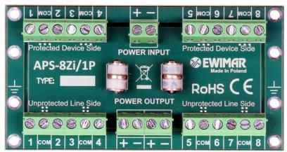 Zabezpieczenie centrali alarmowej APS-8Zi/1P Kod towaru: APS-8ZI/1P Moduł przeznaczony jest do ochrony central systemów alarmowych przed przepięciami i wyładowaniami atmosferycznymi. Posiada 8 torów ochronnych przeznaczonych dla sygnałów czujek alarmowych oraz jeden wspólny tor ochronny dla ich …