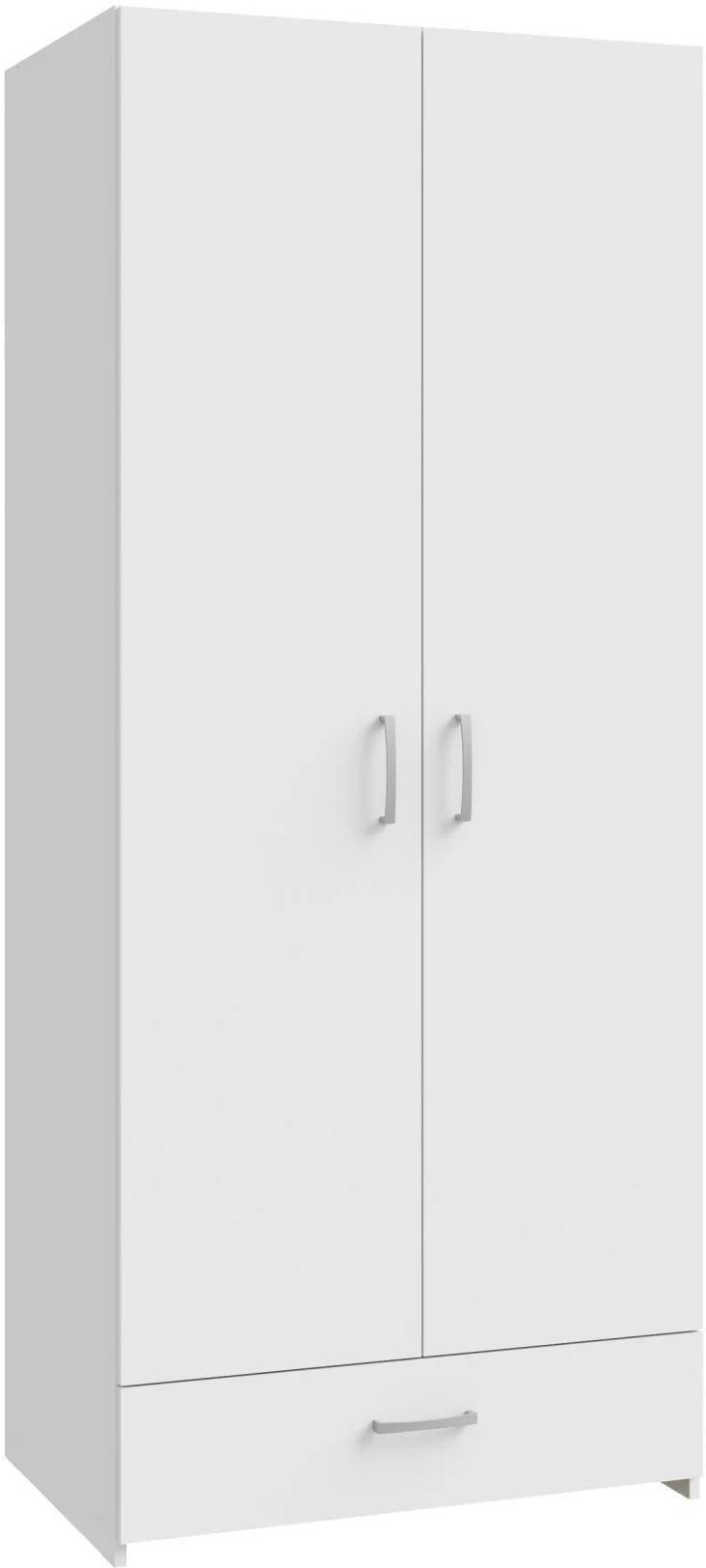Szafa biała z kolekcji ECONOBOX 2, od Meble Forte, ułatwia utrzymanie porządku wśród wszystkich elementów garderoby. Mebel dysponuje półką, drążkiem odzieżowym oraz szufladą na drobne przedmioty. Jego atutem jest także białe wybarwienie, które efektownie odbija światło i powiększa optycznie wybrane pomieszczenie. Czym wyróżnia się szafa z szufladą ECONOBOX 2? Szafa z półką i drążkiem ECONOBOX 2 została wykonana z wysokiej jakości płyty meblowej, niewymagającej w pielęgnacji i odpornej na uszkodzenia. Jej bryłę zagospodarowano przy pomocy obszernej wnęki, którą użytkownik może wyposażyć w dodatkowe półki, dostępne w ramach tej samej kolekcji. Szafa posiada drzwiczki uchylane przy pomocy poręcznych uchwytów, a także szufladę osadzoną na prowadnicach kulkowych. Dzięki takiej budowie mebla da się wygodnie przechowywać w nim tekstylia poskładane, odzież wiszącą, a także bieliznę i dodatki. W jakim wnętrzu sprawdzi się biała szafa ECONOBOX 2? Prezentowana biała szafa z szufladą na dole ECONOBOX 2 nie zajmuje dużej części powierzchni podłogowej, dlatego sprawdzi się zarówno w większych, jak i w niewielkich pomieszczeniach, takich jak sypialnia, garderoba czy przedpokój. Mebel ma również prosty, minimalistyczny design, dzięki czemu nie przytłoczy żadnej aranżacji. Jego białe wybarwienie pomoże też rozświetlić wnętrze i optycznie je powiększyć. Szafa będzie jasnym tłem dla wyrazistych dodatków dekoracyjnych. Pozwoli również utrzymać elegancki charakter wystroju bez względu na zmieniające się trendy wnętrzarskie. Wymiary szafy Szerokość: 79,7 cm Głębokość: 54,4 cm Wysokość: 190,5 cm