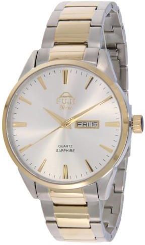 Zegarek męski FUJI M7134QGS - Silver Mechanizm: Typ - KWARCOWY Koperta: Materiał - STAL NIERDZEWNA Kształt - OKRĄGŁY Kolor - SREBRNO-ZŁOTY Wymiary - SZEROKOŚĆ 41mm / GRUBOŚĆ 11mm Wodoszczelność - 100M / 10ATM Szkło - SZAFIROWE - duża odporność na zarysowania. Tarcza: Typ - ANALOGOWY - wskazówkowa …