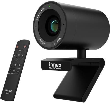 Wysokiej jakości czujnik Sony Krystalicznie czysty obraz w wysokiej rozdzielczości Doskonała jakość obrazu podczas wideorozmów, dzięki obiektywowi Innex C570 z czujnikiem Sony. Kamera wyposażona w matrycę Sony Starvis CMOS, 5-krotny zoom cyfrowy, zapewnia wyrazisty obraz w jakości 4K i żywe kolory. Kamera szerokokątna 120° Optymalne uchwycenie rejestrowanej przestrzeni Innex C570 doskonale sprawdza się w małych i średnich salach konferencyjnych oraz salach lekcyjnych. Pozwala uchwycić wszystkie osoby znajdujące się w pokoju przy mniejszej odległości kadrowania. Szeroki kąt 120° pozwala lepiej rejestrować przestrzeń, zapewniając wyjątkowe, pozbawione zniekształceń detale w rozdzielczości 4K. Automatyczne kadrowanie Uzyskaj najlepszy kadr Inteligentna funkcja automatycznego kadrowania wykryje osoby znajdujące się na wprost obiektywu i ustawi odpowiedni kadr. Za każdym razem, gdy ktoś dołączy do spotkania, opuści je lub zmieni położenie, (o ile znajduje się w polu widzenia 120°), Innex C570 automatycznie dostosuje kadr do nowych okoliczności. Kadrowanie, pochylanie i powiększanie Skup uwagę na najważniejszym miejscu 5-krotny zoom cyfrowy pozwala skupić się na tym co ważne dla twoich rozmówców. Kamerę obsługujemy za pomocą pilota. W bardzo łatwy sposób możemy ustawić kadr na prezentera, określoną grupę osób lub notatki na tablicy. Pilot Intuicyjna obsługa urządzenia Za pomocą pilota możesz szybko wyłączyć/włączyć kamerę i mikrofon. Łatwo przełączyć się pomiędzy trybem automatycznego kadrowania a ręcznym trybem e-PTZ. Dzięki menu OSD możesz dostosować ustawienia obrazu. Bez oprogramowania, bez aplikacji instalowanej na komputerze lub smartfonie. Dostęp do wszystkich funkcji masz z poziomu pilota. Korekcja światła i kompensacja podświetlenia Innex C570 wykorzystuje wysokiej jakości czujnik SONY Starvis CMOS, który obsługuje HDR, kompensację podświetlenia, korekcję słabego oświetlenia i redukcję szumów. Reprodukuje realistyczne wideo i zapewnia wysoką jakość obrazu w każdych warunkach oświetlenia. Obrót i odbicie lustrzane Skonfiguruj kamerę w dowolny sposób. Innex C570 obsługuje obrót o 180° oraz odbicie lustrzane, co pozwala na montaż kamery „do góry nogami”. Wbudowane podwójne mikrofony Płynna komunikacja Kamera przechwytuj głos każdego uczestnika automatycznie tłumiąc hałas, aby zapewnić płynną komunikację. Certyfikat Barco ClickShare Conference Kamera Innex C570 certyfikowana przez Barco. Bezpieczeństwo Wbudowana przesłona w łatwy sposób pozwala zasłonić obiektyw aparatu, gdy nie korzystasz z kamery. SPECYFIKACJA Model: C570 Sterowanie: Pilot FPS: 30 FPS Focus: TAK | Stały AI Automatyczne kadrowanie: TAK Kompatybilność: Dowolne urządzenie Pilot: TAK Wbudowany mikrofon: TAK Czułość mikrofonu: -30dB Redukcja szumów: TAK Zasięg mikrofonów: Efektywny 4 m | Maksymalny 8 m Montaż: Klips | Tripod Zasilanie: USB 3.0 Komunikacja z komputerem: USB-C do USB-A Rozdzielczość: 3840 x 2160 Zoom: TAK | Cyfrowy 5X EPTZ Czujnik: 8.46 MP | 1/2.8″ Sony CMOS Sensor Osłona prywatność: TAK Kompensacja podświetlenia: TAK Korekcja słabego oświetlenia: TAK HDR: TAK Automatyczny balans bieli: TAK Ekspozycja automatyczna: TAK Oprogramowanie: NIE Instalacja do góry nogami: TAK Certyfikat BARCO: TAK Jednoczesne śledzenie wielu osób: NIE Tryb AI: TAK Kamera 360: NIE Kamera 180: NIE Kamera personalna: NIE Kamera konferencyjna: TAK Wymiary zewnętrzne: * Kąt widzenia: 120° Waga: *