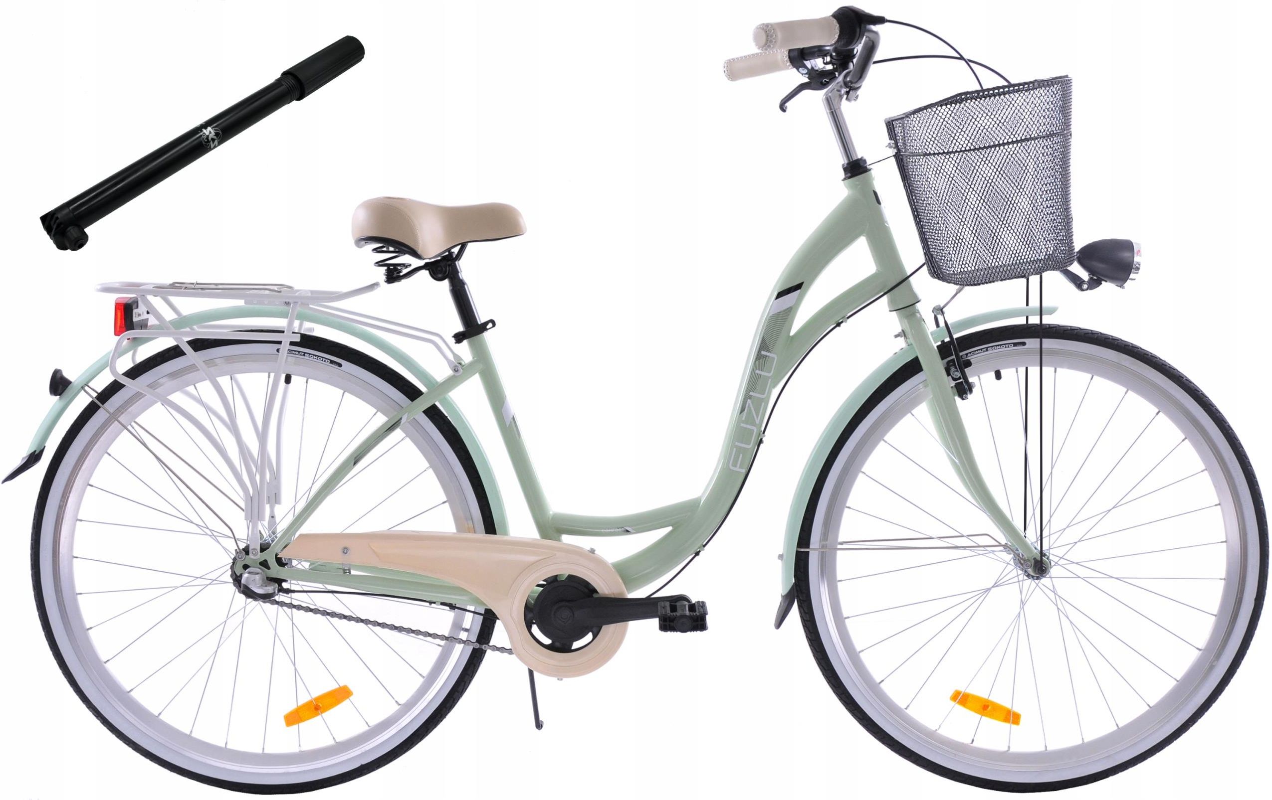 Rower miejski 28 FUZLU NEVADA biało - morski SPECYFIKACJA Rama/kolor stalowa typu łabędź/biały Rozmiar ramy 18" Widelec stalowy Biegi 1 Hamulec przód V-Brake aluminium Hamulec tył torpedo (w pedałach) Korba jednorzędowa Suport na łożyskach maszynowych Piasta przód stal Piasta tył stal Obręcze wzmacniane stożkowe aluminiowe Opony 28x1,75 Kierownica stalowa jaskółka retro Wspornik kierownicy stalowy Siodło na sprężynie Pedały tworzywo Wyposażenie: błotniki, bagażnik, oświetlenia LED, podpórka, osłona łańcucha, kosz, pompka Producent zastrzega sobie nieznaczne zmiany w specyfikacji Rower standardowo wysyłany jest w 80% złożony. Do przykręcenia pozostają jedynie: przednie koło, pedały, kierownica oraz siodełko Istnieje możliwość zamówienia roweru w wersji złożonej* - na kołach *Do przykręcenia pozostaną wtedy jedynie pedały oraz kierownica i kosz NALEŻY WYBRAĆ - KURIER DHL - W OPCJACH DOSTAWY.