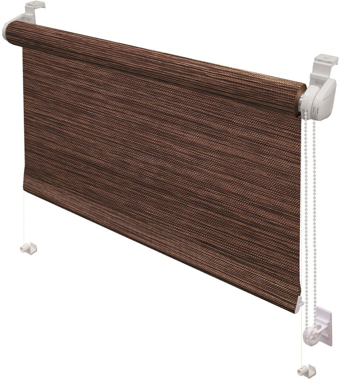 Mini roleta NATURA brązowa 68 cm x 215 cm. Rolety Natura zachwycają nowoczesnym stylem i wysokiej jakości wykończeniem. Naturalne, szlachetne kolory dodają im klasy. Z powodzeniem wpiszą się w nawet najbardziej wyszukane aranżacje wnętrz. Będą gustowną, ale też praktyczną dekoracją, dzięki której uzyskasz pożądane zaciemnienie pomieszczenia. Elegancka, grubo pleciona struktura tkaniny Roleta została wykonana z tkaniny o grubo plecionej strukturze, z mieszanych włókien celulozy (75%) i poliestru (25%). Jest częściowo zaciemniająca, o współczynniku transmisji 25-40%. Prezentuje się naturalnie i elegancko. Seria została utrzymana w kolorystyce ziemi, odnajdziemy w niej ciepłe brązy, gustowne beże, czy bardziej stonowane popiele i szarości. O doskonałą prezencję rolety zadbano instalując ciężki obciążnik z MDF, który dobrze rozprostowuje tkaninę. Jest też wyposażona w żyłkowe prowadzenie boczne, które zdaje egzamin nawet przy oknach uchylnych. Seria jest dostępna nie tylko w różnych wariantach kolorystycznych, ale też rozmiarach. Zobacz także pozostałe rolety na Obi.pl. Kliknij tutaj. Szybki, bezpieczny i łatwy montaż Roleta przeznaczona jest do instalowania na skrzydle okna przy pomocy zaciskowych wieszaków naokiennych lub samoprzylepnych płytek montażowych. Nie wymaga wiercenia, montaż jest bezinwazyjny. Strzępieniu rolety zapobiega kieszeń obciążnika zaszywana z podwójnym podwinięciem. Mechanizm napędowy można zainstalować z prawej lub z lewej strony. W komplecie jest bezpieczny zrywacz łańcuszka, który powoduje jego rozpięcie po przekroczeniu określonej siły. Napinacz zaś porządkuje bieg łańcuszka, utrzymuje go przy ramie okna oraz umożliwia obsługę rolety jedną ręką. Rura nawojowa ma średnicę 18 mm, do zawieszenia lub przyklejenia do skrzydła okna. Wyposażenie rolety spełnia normę EN13120 dotyczącą bezpieczeństwa użytkowania zasłon wewnętrznych.