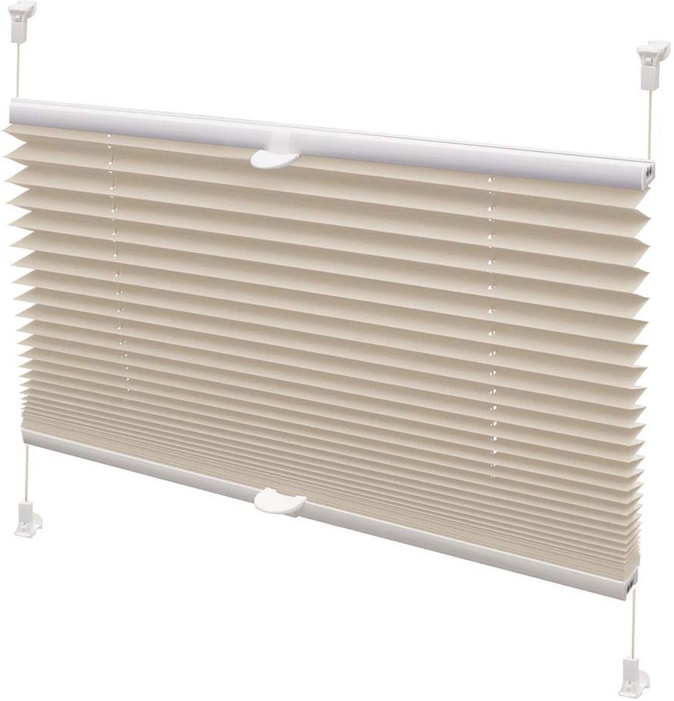 Roleta plisowana VERONA beżowa 97 cm x 150 cmRoleta plisowana z dwoma aluminiowymi, ruchomymi belkami. Specjalna konstrukcja mechanizmu rolety pozwala na przesłonę dowolnie wybranej części okna, chroniąc pomieszczenie przed słońcem lub wzrokiem przechodniów. Roleta wykonana jest z wysokiej jakości tkaniny poliestrowej odpornej na strzępienie, dodatkowo pokrytej preparatem antyseptycznym, dzięki czemu roleta charakteryzuje się niezwykłą trwałością oraz estetycznym wyglądem. Roleta stanowi nie tylko praktyczny, ale również elegancki element dekoracyjny wnętrza. Ponadto dopasowane kolorystycznie sznurki prowadzące, wykonane z wyjątkowo mocnej przędzy, zamocowane w tulejowanych otworach usztywniają konstrukcję rolety, zapewniając jej długie użytkowanie. Szerokość plisowania 20 mm. W komplecie zestaw uchwytów umożliwiający bezinwazyjny montaż na skrzydle okna.