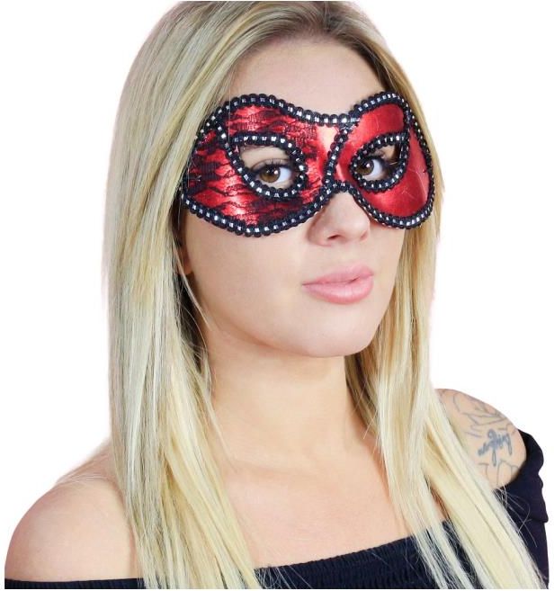 - maska na oczy ozdobiona koronką - idealne uzupełnienie karnawałowej kreacji - wymiary: 18x8 cm - kolor: czerwono-czarny