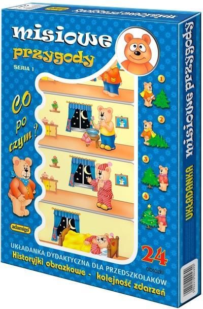 Misiowe przygody to układanka dydaktyczna przeznaczona dla przedszkolaków, która stymuluje Twojego maluszka do myślenia, a także uczy i pokazuje jaka jest kolejność poszczególnych zdarzeń lub czynności. Zabawa została stworzona tak, aby rozwijać wyobraźnię i słownictwo malucha, ponieważ jednym z …