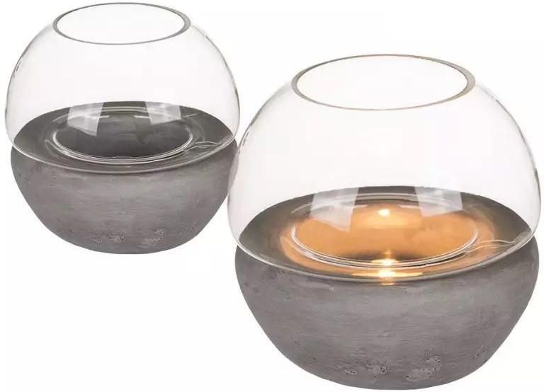 - szklany świecznik na cementowej szarej podstawce z możliwością umieszczenia tealightu - stanowi bardzo elegancki element ozdobny do wielu rodzajów wnętrz - materiał: szkło