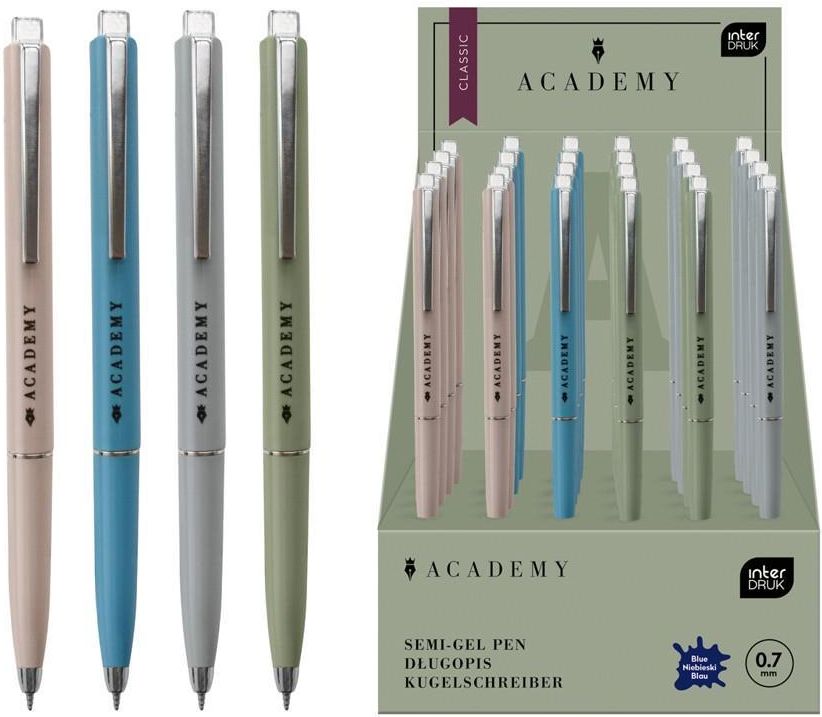 Cechy produktu Długopis CLASSIC to elegancki i stylowy wybór dla osób ceniących jakość i komfort pisania. Jego metalowa obudowa o matowym wykończeniu nadaje mu nowoczesny i profesjonalny wygląd, a ergonomiczny kształt zapewnia wygodne użytkowanie. Niebieski wkład żelowo-olejowy gwarantuje płynne i precyzyjne pisanie, a grubość linii 0.7 mm sprawia, że jest idealny zarówno do codziennych notatek, jak i eleganckich podpisów. Uwaga, wysyłamy jeden z dostępnych wzorów produktu. Kraj produkcji: PL Producent/osoba odpowiedzialna za bezpieczeństwo produktuINTERDRUK S.A.Łucka 1500-842 Warszawainfo@interdruk.com.pl+48 22 486 60 00