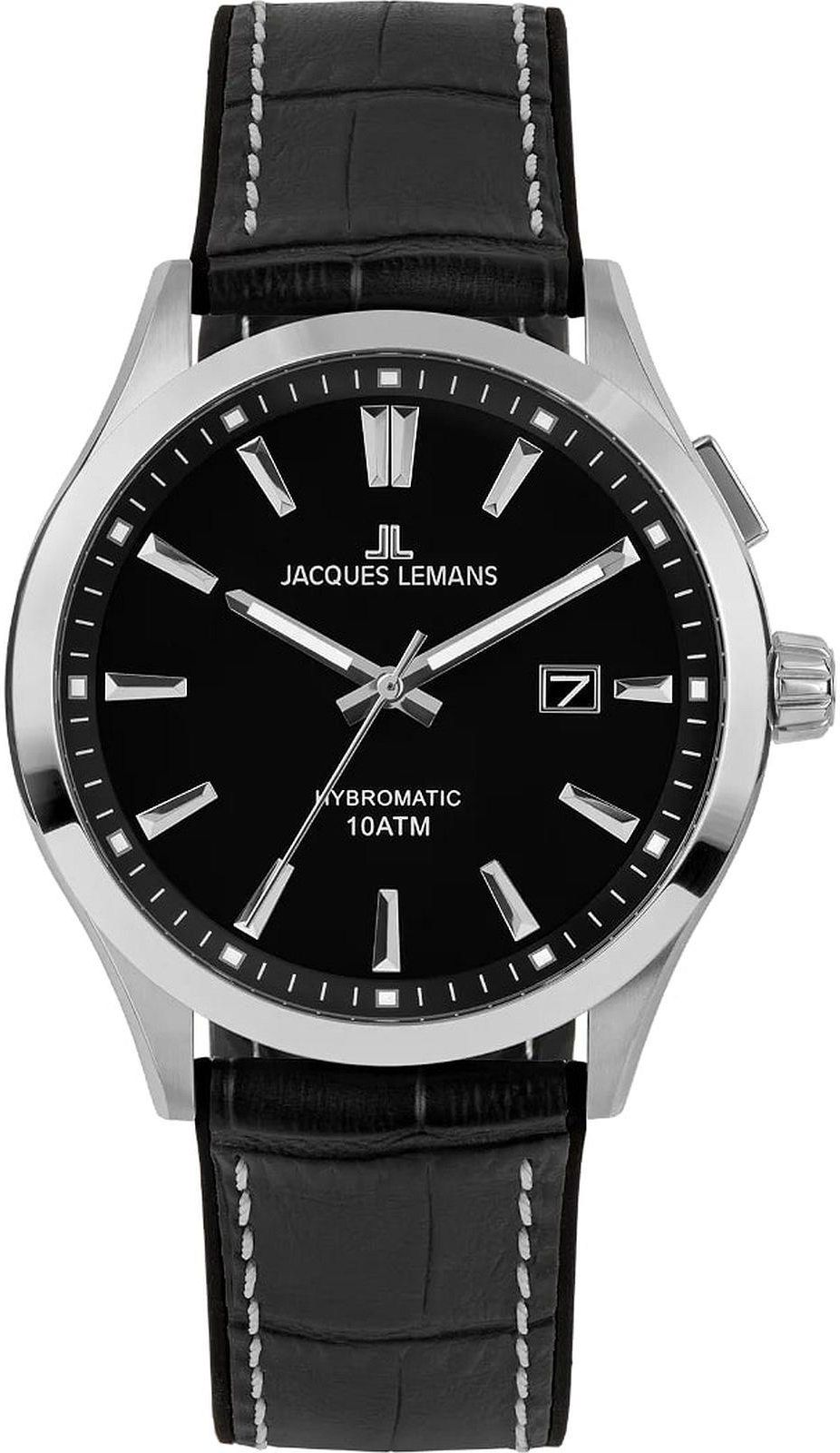 Zegarek JACQUES LEMANS Hybromatic 1-2130A Zegarek męski JACQUES LEMANS Hybromatic 1-2130A Mechanizm: Typ - Hybrid / Kinetic / Autoquartz. Koperta: Materiał - STAL NIERDZEWNA, Kształt - OKRĄGŁY, Kolor - SREBRNY, Wymiary - SZEROKOŚĆ 43mm / GRUBOŚĆ 12mm, Wodoszczelność - 100M / 10ATM, Szkło - …