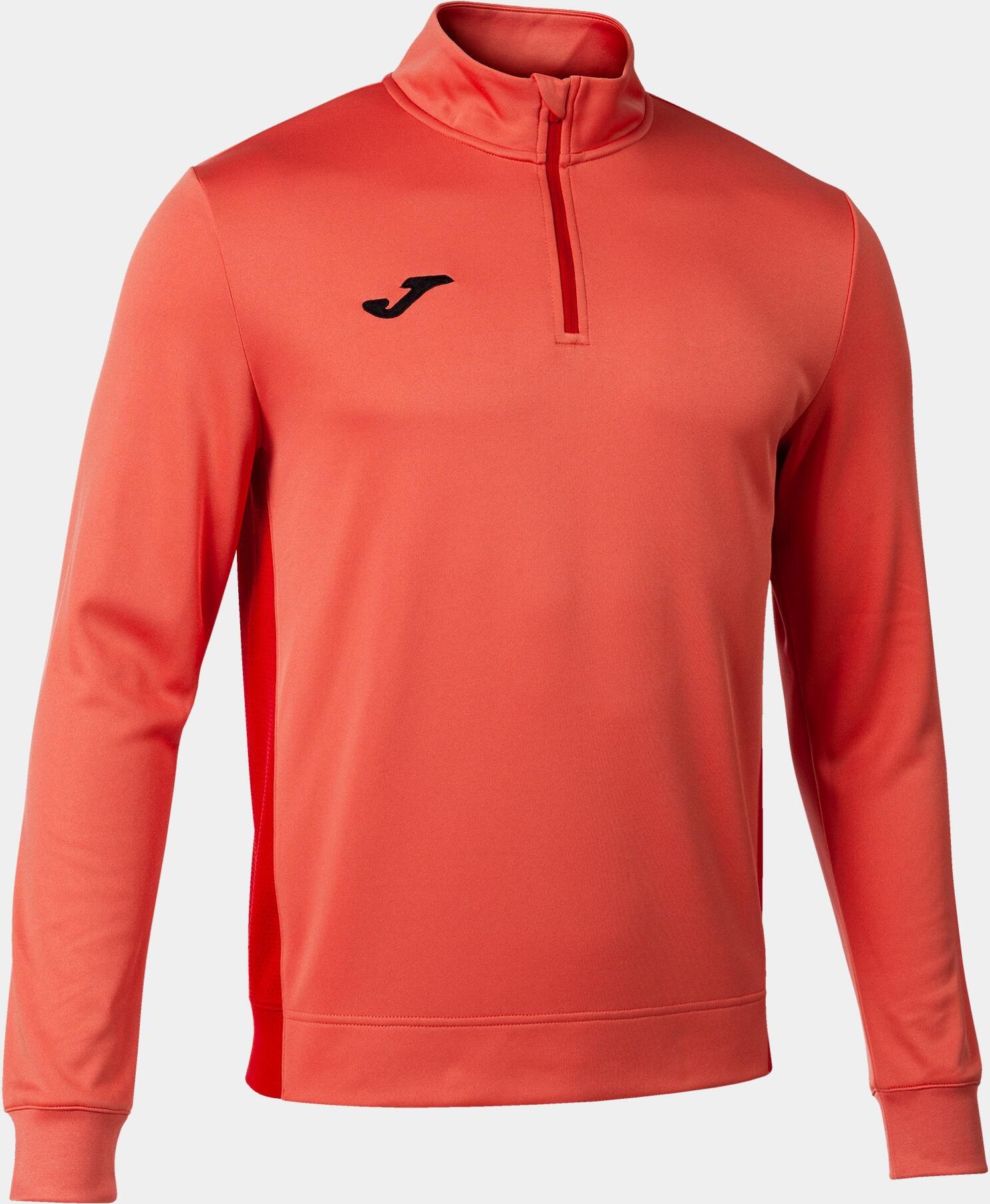 WINNER II SWEATSHIRT FLUOR ORANGE Właściwości Zamek pod szyją Mankiety i dół ze ściągaczem Tkanina z polarem od wewnątrz Kontrastowe wzory kolorystyczne Swoboda ruchów Rodzaj dopasowania: regularny 100% Poliester