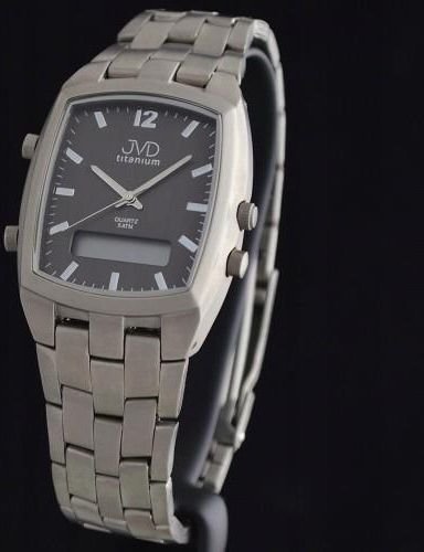 Zegarek JVD JVDX45 Płeć: MęskiMarka - Pochodzenie: CzechyMechanizm: KwarcowySzkło: MineralnePasek / Bransoleta - Rodzaj: BransoletaPasek / Bransoleta - Materiał: TytanPasek / Bransoleta - Odcień (Kolor): SzarośćKoperta - Kształt: ProstokątnaKoperta - Materiał: TytanKoperta - Odcień (Kolor): …
