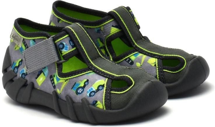Kapcie dla chłopca polskiej marki Befado z dziurkami w cholewce, umożliwiają swobodny przepływ powietrza. Połączenie wysokiej jakości materiałów oraz estetycznego wyglądu czynią kapcie idealnym wyborem. Buty z powodzeniem sprawdzą się również na zewnątrz w cieplejsze dni. Cholewka butów Befado została stworzona z tkanin bawełnianych. Kapcie posiadają elastyczną, oddychającą, profilowaną podeszwę, dzięki której nie ma potrzeby stosowania dodatkowych wkładek. Zapięcie na solidny rzep umożliwia w łatwy sposób samodzielne ubieranie i zdejmowanie bucików. Kapce Befado nadają się zarówno do żłobka, przedszkola jak i do noszenia po domu.