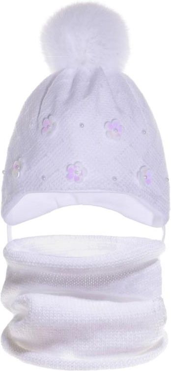 KOMPLET DZIEWCZĘCY BIAŁY CZAPKA + KOMIN 38-40 CM AMBRA Płock