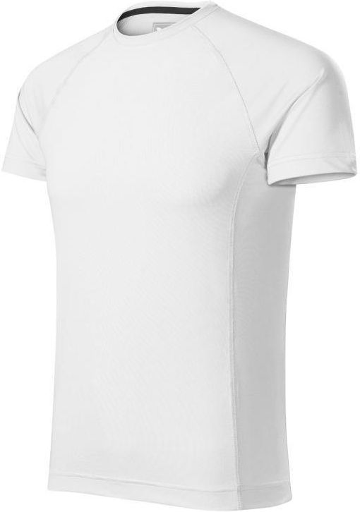 Właściwości Single Jersey, 95 % micro poliester, 5 % elastan gładki, elastyczny, szybkoschnący materiał, idealne do uprawiania sportu i aktywności fizycznej, ciasno dopasowany krój po bokach, ozdobnie przeszycie, wąska lamówka z materiału wierzchniego, lamówka na karku wzmocniona kontrastową taśmą, krótkie rękawy raglanowe, lekko przedłużona w tylnej części, etykieta w formie naklejki, materiał przystosowany do sublimacji (jasne kolory)