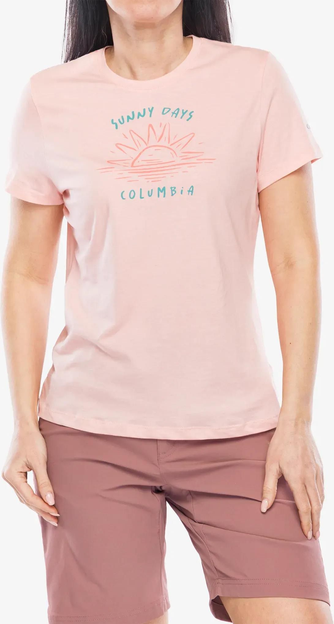 • Koszulka z nadrukiem damska Columbia Ruby Springs Graphic Fitted S/S - pink sand/ready for rays