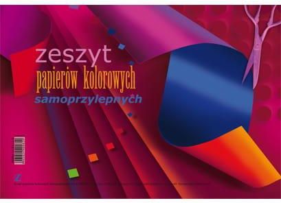 Papier do wycinanek. Zeszyt zawiera 8 kartek papieru samoprzylepnego w różnych kolorach o wielkości 200x145 mm. Spięty zszywką.
