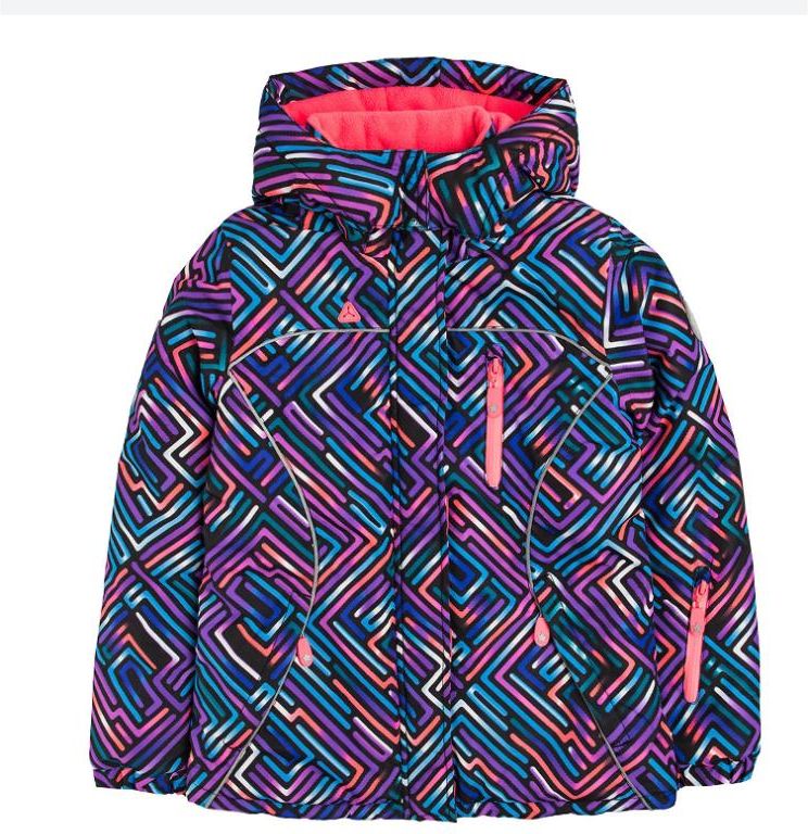 - wodoodporny i wiatroszczelny materiał zabezpieczy przed wilgocią i wiatrem (WP 8000, MVP 3000) - ciepła, polarowa podszewka (bez rękawów) oraz poliestrowe wypełnienie uchronią dziecko przed mrozem - klejone szwy zapewniają dodatkową izolację oraz zwiększają trwałość kurtki - kurtka zapinana na zamek błyskawiczny osłonięty dodatkową listwą zapinaną na rzep - praktyczny kaptur ochroni głowę dziecka przed wiatrem, mrozem i śniegiem - duża ilość kieszeni pomieści wszystkie niezbędne akcesoria - kurtka posiada wewnętrzną kieszeń na gogle, kieszeń na telefon lub mp3 z otworem na słuchawki oraz kieszeń na skipass na rękawie - pas śniegowy na zatrzaski oraz dół regulowany za pomocą pary ściągaczy ze stoperem zapobiegną dostaniu się śniegu pod kurtkę - odblaskowe elementy sprawią, że dziecko będzie doskonale widoczne, a dzięki temu bardziej bezpieczne na stoku czy drodze - elastyczne półrękawiczki zapewnią dodatkową izolację - żywa kolorystyka oraz geometryczny wzór pozwolą wyróżnić się w tłumie rówieśników