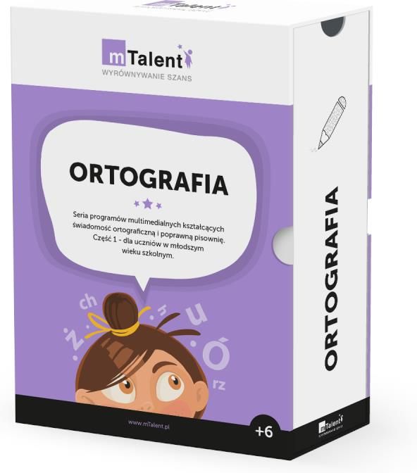 mTalent Ortografia Seria programów multimedialnych kształcących świadomość ortograficzną i poprawną pisownię Do wykorzystania na zajęciach dydaktycznych, dydaktyczno-wyrównawczych, zajęciach terapii pedagogicznej i innych mających na celu wspomaganie nauki poprawnej pisowni i zasad ortograficznych …