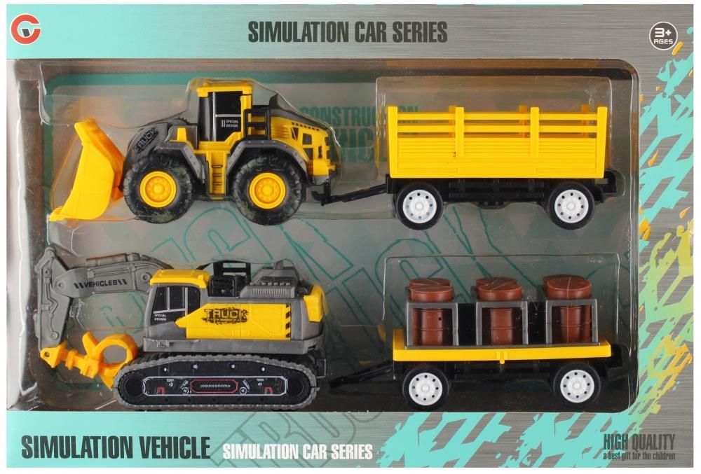 Zalety produktu maszyny budowlane posiadaj funkcj pull&back dziki czemu po pchniciu pojazdu do przodu kontynuuj jazd samodzielnie, posiadaj ruchome elementy. Solidnie wykonane maszyny budowlana MEGA CREATIVE , to idealny sposób na wietn zabaw Zawarto zestawu 2 x maszyna budowlana koparka i spychacz, 2 x przyczepa. Cao wykonana z plastiku. Wymiary/waga/baterie wymiary produktu d. wys. g. cm koparka- 12x6x5, spychacz-11x6x6, wymiary produktu w opakowaniu d. x wys. x g. cm 28x19x7, waga produktu bez opakowania kg 0,14 kg, waga produktu w opakowaniu kg 0,26 kg, nie wymaga zasilania bateriami. Produkt przeznaczony dla dzieci od lat 3 . Pakowany w kartonik z okienkiem. W kartonie zbiorczym po 48 szt.