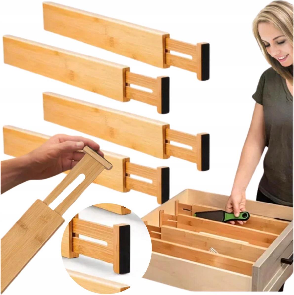 Zdjęcie More&Deco Przegrody Do Szuflad Rozsuwane Bambusowe Organizer Separator Przegródka - Płock