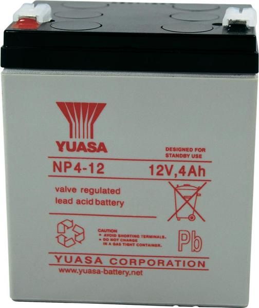 Akumulator ołowiowy Yuasa NP4-12 NP4-12, AGM, 12 V, 4 Ah Akumulator kwasowo-ołowiowy NP 4 - 12 Nie wymaga konserwacji Zabezpieczony przed wylaniem Stały dostęp do wysokiego prądu Yuasa jest producentem bezobsługowych, stacjonarnych akumulatorów przemysłowych serii NP, których produkcja w ostatnim dziesięcioleciu wyniosła ponad 40 mln sztuk, a ich właściwości techniczne są stale ulepszane. Użytkownik nabywa absolutnie dopracowany produkt wysokiej jakości, z którego w wielu przypadkach (w optymalnych warunkach eksploatacji) może korzystać do 5 lat. Wyposażenie: Doskonałe właściwości prądowe · Bardzo dobra efektywność ładowania · Nie jest produktem niebezpiecznym wg IATA · Wysoka żywotność i niewielkie samorozładowanie. Zastosowanie: UPS · Telekomunikacja. · Systemy oświetlenia awaryjnego · Alarm pożarowy i systemy bezpieczeństwa · Systemy sterowania i regulacji · Testery elektroniczne. Dane techniczne: Certyfikat VDS: nie · Głębokość produktu: 70 mm · Możliwość ponownego ładowania: tak · Napięcie: 12 V · Obszar zastosowania: Systemy alarmowe,Pojazdy elektryczne · Pojemność: 4 Ah · Połączenie akumulatora: Płaska wtyczka 4,8 mm · Szerokość produktu: 90 mm · Technologia akumulatora: AGM · Waga: 1750 g · Wysokość produktu: 106 mm · Właściwości baterii: Bezobsługowy Wskazówki: Niemieckie Zrzeszenie Ubezpieczycieli Majątkowych (Verband der Sachversicherer – VdS) oficjalnie dopuściło te akumulatory do stosowania w instalacjach alarmowych.