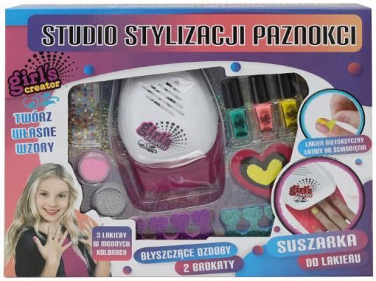 Studio do Paznokci Salon Suszarka Brokat Lakier XL M0-NO-1002365-0 Cudowny oraz bezpieczny ZESTAW DO STYLIZACJI PAZNOKCI dla naszych księżniczek zapakowane w estetyczne opakowanie. Od teraz młode damy mogą dbać o swą urodę z naszym uroczym zestawem!Lakier jest nietoksyczny i można go łatwością usunąć z paznokci i jest bezpieczny dla skóry naszych dzieci. Maszynka do suszenia paznokci zasilana jest bateriami. Dzięki czemu po pomalowaniu paznokci, wkładając do suszarki dłonie uruchomi się wiatrak, który suszy lakier. MASZYNKA NAPRAWDĘ DZIAŁA! W zestawie znajdują się aż 3 lakiery w różnych, modnych kolorach a także brokat i błyszczące ozdoby, które sprawią, że paznokcie dziewczynki będą się wspaniale prezentować! Wszystko jest zapakowane w uroczym opakowaniu - idealnym na prezent dla młodej kosmetyczki. Produkt jest starannie wykonany z zachowaniem detali i świetną kolorystyką, która niesamowicie przyciąga uwagę. Produkt jest bezpieczny dla dzieci. ZESTAW ZAWIERA suszarka do paznokci, 3 lakiery w modnych kolorach, 2 separatory do paznokci, 2 brokaty, pilniczek do paznokci, błyszczące ozdoby. TWÓRZ WŁASNE WZORY PAZNOKCI I ZOSTAĆ MAŁĄ STYLISTKĄ PAZNOKCII! Zalety zestawu 3 LAKIERY W MODNYCH KOLORACH WSPANIAŁE OZDOBY DO PAZNOKCI LAKIER NIETOKSYCZNY ŁATWY DO ŚCIĄGNIĘCIA BEZPIECZNY ZESTAW WIEK: 3+ WYMIARY OPAKOWANIA: 33X25,5X6,5 CM ZASILANIE: BATERIE 2XAA 1,5V (brak w zestawie)
