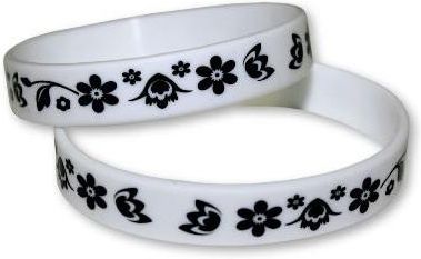 Biała opaska silikonowa z czarnym ornamentem kwiatowym. Materiał: silikon Kolor: biało-czarny