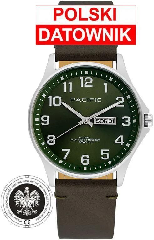 Mechanizm: Typ - KWARCOWY - Mechanizm zasilany baterią srebrową, Koperta: Materiał - STAL NIERDZEWNA, Kształt - OKRĄGŁY, Kolor - SREBRNY Wymiary - SZEROKOŚĆ 42mm / GRUBOŚĆ 10mm, Wodoszczelność - 100M / 10ATM, Szkło - MINERALNE - niska odporność na zarysowania, Tarcza: Typ - ANALOGOWY - wskazówkowa forma prezentacji czasu, Kolor - ZIELONY, Indeksy - w kolorze SREBRNYM, Wskazówki - w kolorze SREBRNYM, Pasek / Bransoleta: Typ - PASEK, Materiał - SKÓRA NATURALNA, Kolor - BRĄZOWY, Szerokość przy mocowaniu - 22mm Szerokość przy zapięciu - 20mm Maksymalny obwód - 20cm Funkcje: DATOWNIK - Wskaźnik dni miesiąca oraz dni tygodnia. Informacje ogólne: Pochodzenie marki - POLSKA Przy zakupie otrzymujesz: oryginalny zegarek PACIFIC, firmowe opakowanie PACIFIC, kartę gwarancyjną producenta.