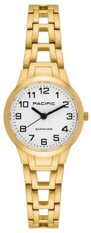 Mechanizm: Typ - KWARCOWY - Mechanizm zasilany baterią srebrową, Koperta: Materiał - STAL NIERDZEWNA, Kształt - OKRĄGŁY, Kolor - ZŁOTY Wymiary - SZEROKOŚĆ 26mm / GRUBOŚĆ 8mm, Wodoszczelność - 30M / 3ATM, Szkło - SZAFIROWE - wysoka odporność na zarysowania, Tarcza: Typ - ANALOGOWY - wskazówkowa forma prezentacji czasu, Kolor - BIAŁY, Indeksy - w kolorze CZARNYM, Wskazówki - w kolorze CZARNYM, Pasek / Bransoleta: Typ - BRANSOLETA, Materiał - STAL NIERDZEWNA, Kolor - ZŁOTY, Szerokość przy mocowaniu - 12mm Szerokość przy zapięciu - 10mm Maksymalny obwód - 18cm Funkcje: BRAK. Informacje ogólne: Pochodzenie marki - POLSKA Przy zakupie otrzymujesz: oryginalny zegarek PACIFIC, firmowe opakowanie PACIFIC, kartę gwarancyjną producenta.