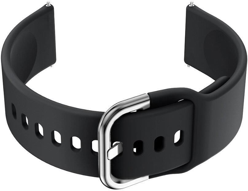 Pasek gumowy do smartwatch U01 - czarny/srebrny - 20mm OPIS Pasek gumowy w kolorze czarnym. Klamerka metalowa w kolorze srebrnym. WYMIARY szerokość przy mocowaniu: 20mm szerokość przy klamerce: 26mm długość części z klamerką: 86mm długość części z dziurkami: 121mm liczba dziurek: 11 maksymalna / …