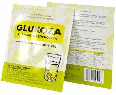 Opis: Panawit Glukoza o smaku cytrynowym to żywność specjalnego przeznaczenia medycznego proszek do sporządzenia roztworu doustnego.. Skład: Glukoza, kwas cytrynowy (regulator kwasowości), aromat cytrynowy. Wartość odżywcza 100 g proszku 76,5 g proszku Wartość energetyczna 1666 kJ/392 kcal 1275 kJ/300 kcal Tłuszcz, w tym: 0 g 0 g kwasy tłuszczowe nasycone 0 g 0 g Węglowodany, w tym: 98 g 75 g cukry 98 g 75 g Białko 0 g 0 g Sól 0 g 0 g Glukoza 98 g 75 g . Opis: Panawit Glukoza o smaku cytrynowym to żywność specjalnego przeznaczenia medycznego proszek do sporządzenia roztworu doustnego.. Skład: Glukoza, kwas cytrynowy (regulator kwasowości), aromat cytrynowy. Wartość odżywcza 100 g proszku 76,5 g proszku Wartość energetyczna 1666 kJ/392 kcal 1275 kJ/300 kcal Tłuszcz, w tym: 0 g 0 g kwasy tłuszczowe nasycone 0 g 0 g Węglowodany, w tym: 98 g 75 g cukry 98 g 75 g Białko 0 g 0 g Sól 0 g 0 g Glukoza 98 g 75 g . Masa netto: 76,5 g. Przeznaczenie produktu: Do postępowania dietetycznego w celu wykonania doustnego testu tolerancji glukozy (krzywej cukrowej), w stanach niedoboru węglowodanów, stanach wyczerpania po długotrwałym wysiłku fizycznym.. Sposób użycia: Doustny test tolerancji glukozy: po wykonaniu oznaczenia glukozy we krwi na czczo, całą saszetkę (76,5 g) rozpuścić w szklance wody (200-300 ml), roztwór wypić w ciągu 3-5 minut. Następnie oznaczenie glukozy wykonuje się po 120 minutach. W stanach wyczerpania, po wysiłku fizycznym: można przyjąć od 5 g do 20 g (łyżeczka do kilku łyżeczek glukozy).. Ostrzeżenia dotyczące bezpieczeństwa: Nie stosować pozajelitowo.Nie stosować w zespole złego wchłaniania glukozy.Nie stosować produktu jeśli kiedykolwiek wcześniej wystąpiła nadwrażliwość, na którykolwiek z jego składników.Może stanowić zagrożenie dla zdrowia jeśli jest spożywany przez osoby, u których nie stwierdzono określonej choroby, zaburzeń stanu zdrowia lub brak jest wskazań lekarskich wynikających z przeznaczenia produktu. Nie stosować w przypadku nadwrażliwości na którykolwiek składnik produktu.Kobiety w ciąży i karmiące piersią przed zastosowaniem produktu powinny skonsultować się z lekarzem..