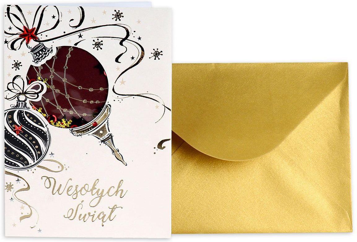 - karnet okolicznościowy - wzór: Boże Narodzenie - bez tekstu wewnątrz - w zestawie z kopertą - wymiary: 12,7 x 17,8 cm