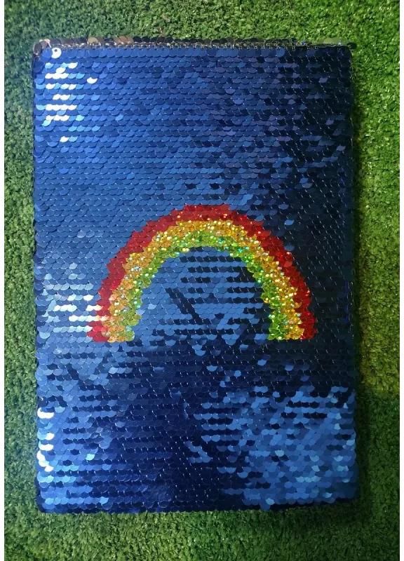 - notes - format A5 - liczba kartek: 80 - zadruk:linia - okładka: twarda, wykonana z dwustronnych cekinów w kolorach niebieskim i srebrnym