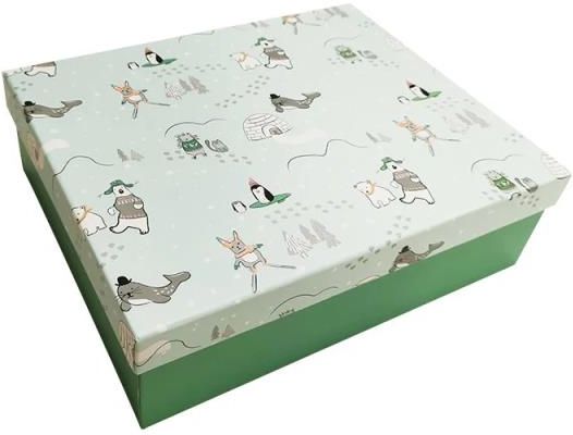 - pudełko prezentowe z limitowanej kolekcji Joy & Fun - ozdobione wzorem w igloo i zwierzęta - kolor: jasnoniebieski, biały, szary, czarny, zielony - kształt: prostokątne - wymiary: 20 x 14