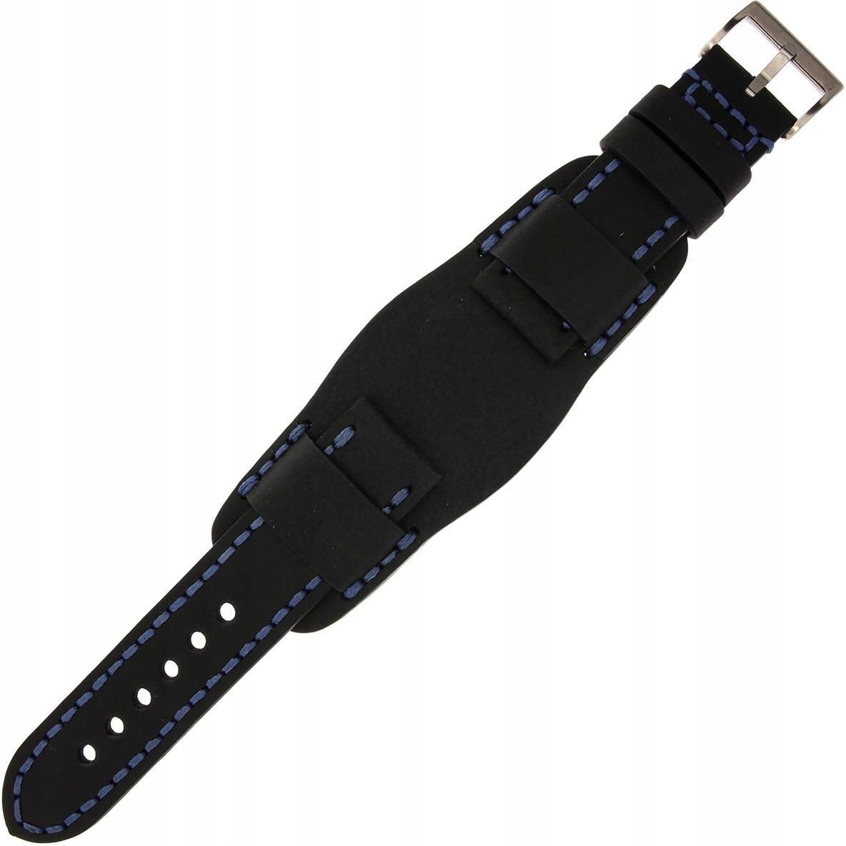 TEKLA WK13 - 24mm - CZARNY - Skórzany pasek do zegarka - Handmade in Poland Pasek / Bransoleta: Rodzaj - PASEK Materiał - SKÓRA HANDMADE Struktura - GŁADKI z grubym przeszyciem w kolorze niebieskim Kolor - CZARNY Mocowanie - UNIWERSALNE Zapięcie: Rodzaj - KLAMERKA Materiał - STAL NIERDZEWNA Kolor - …