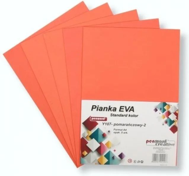 Pianka kreatywna pomarańczowa miękka gumowa pianka przeznaczona do wszelkich prac kreatywnych pianka dekoracyjna to świetny materiał do tworzenia własnych ozdób i projektów rozwija wyobraźnię i pobudza kreatywność gwarantuje dużo zabawy przy tworzeniu dekoracji pianka polecana jest do wielu prac plastycznych, scrapbookingu itp. nadaje się do cięcia, klejenia lub zszywania format A4 marka PENWORD producent PH POLSIRHURT Borys Tadeusz Borys Jerzy s.j. pakowana po 5 szt. Kraj produkcji: PL