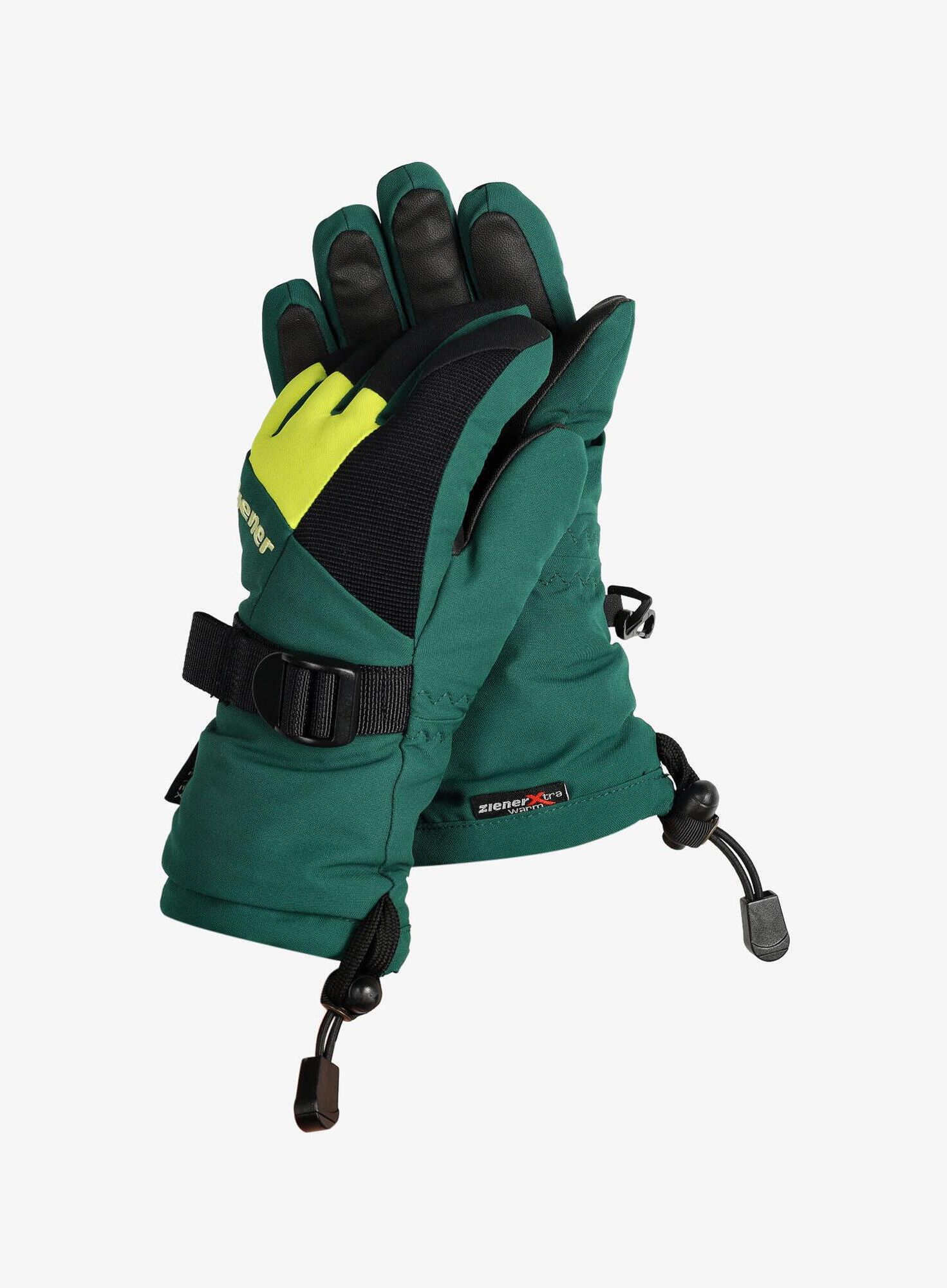 Rękawiczki dziecięce Ziener Lani GTX Junior - deep green to nie tylko funkcjonalne, ale również stylowe i wygodne rękawiczki dla dzieci, które zapewnią ochronę przed zimnem, wiatrem i wilgocią podczas zimowych przygód na stoku. Rękawiczki dziecięce Ziener Lani GTX Junior - deep green są wyposażone w membranę GORE-TEX® Gloves. Dzięki niej model zapewnia skuteczną ochronę przed szybkim namakaniem. Membrana stanowi także barierę dla wychładzających podmuchów wiatru. GORE-TEX® Gloves skutecznie odprowadza wilgoć na zewnątrz, zapewniając suchość i komfort podczas intensywnych aktywności. Rękawiczki posiadają syntetyczną ocieplinę, która zapewnia przyjemne ciepło nawet w lekko wilgotnych warunkach. Pętle nadgarstkowe i możliwość spięcia razem zapewniają praktyczność. Dłuższe mankiety nachodzące na kurtkę z dodatkowym stoperem chronią przed dostaniem się śniegu i zimnego powietrza. Miły w dotyku materiał wewnątrz rękawiczek dodatkowo zwiększa komfort noszenia. Rękawiczki Ziener Lani GTX Junior - deep green - najważniejsze cechy:Dziecięcy model narciarski;Membrana GORE-TEX® Gloves zapewni właściwości wodoodporne i podstawową ochronę przed wiatrem;GORE-TEX® Gloves to także sprawne odprowadzenie wilgoci;Syntetyczna ocieplina zapewni przyjemne ciepło;Wypełnienie zachowuje swoje właściwości nawet gdy jest lekko wilgotne;Pętle nadgarstkowe;Możliwość spięcia razem;Dłuższe mankiety nachodzące na kurtkę ze stoperem;Miły w dotyku materiał wewnątrz.