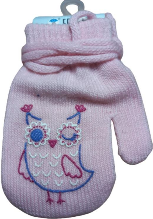 RĘKAWICZKI JEDNOPALCZASTE AKRYLOWE DZIEWCZĘCE NA SZNURKU PUDROWY RÓŻ SÓWKA 12CM YO! CLUB Płock