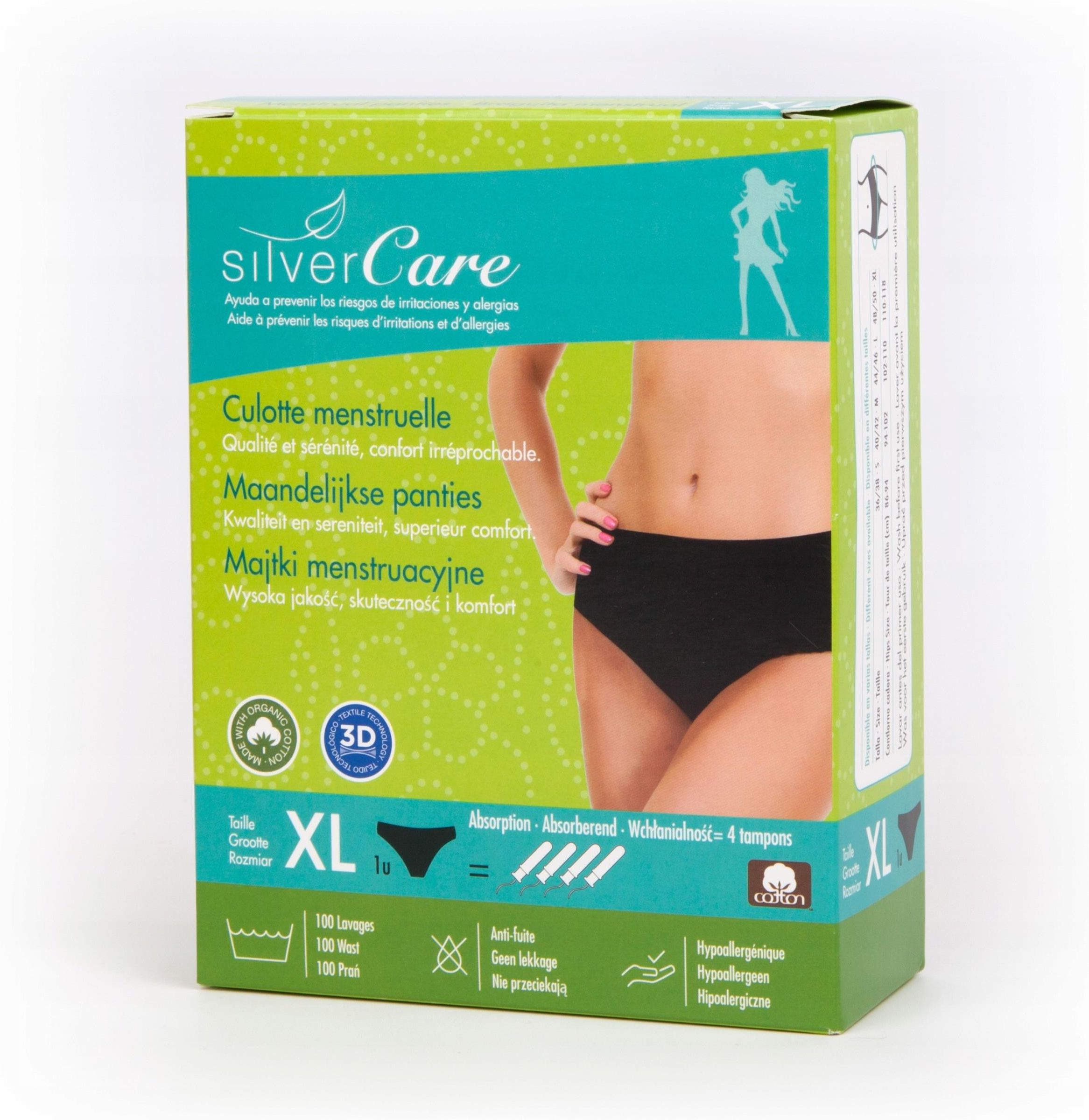 Majtki menstruacyjne ekologiczne Silver Care CLASSIC XL 100% bawełna BIO Majtki menstruacyjne ekologiczne wykonane w całości z najzdrowszej certyfikowanej bawełny organicznej GOTS, uprawianej bez użycia pestycydów, herbicydów i nawozów chemicznych. Bielizna menstruacyjna zastępuje podpaski, tampony …
