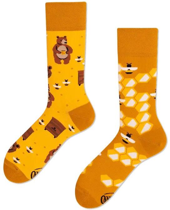 Słodkie skarpetki nie do pary z wzorem plastra miodu i uroczymi misiami pomagają rozpocząć każdy dzień uśmiechem, dodają porankom magii, a dodatkowo świetnie prezentują się niemal w każdej stylizacji. Mniam!Ten model to idealne skarpetki na prezent dla fanów Kubusia Puchatka i puchatości samej w sobie. Bo czy istnieje bardziej rozczulający deseń niż pracowite pszczółki i zadowolone niedźwiadki na tle plastra miodu? Naszym zdaniem nie – i tego się trzymamy! Skład: 80% Bawełna, 17% Poliamid, 3% Elastan Długość stopy: 28-30.5 cm