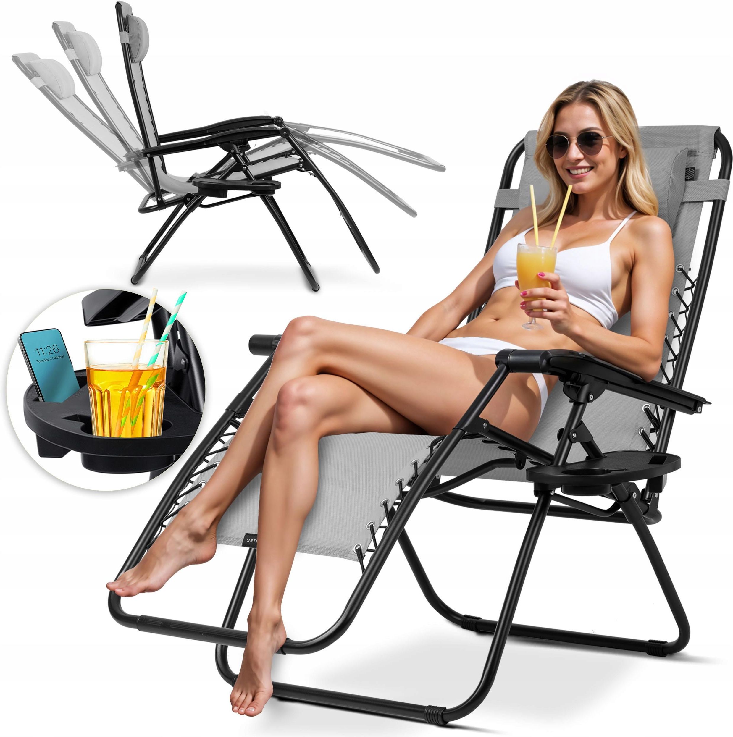 Leżak ogrodowy składany ChillWell Sofotel: ChillWell szary Doskonały wybór do ogrodu, na plażę, na kemping! Możliwość dostosowania kąta nachylenia oparcia pozwala na regulację pozycji leżenia, dla większej wygody. Mini stolik pozwala na trzymanie napojów, książek czy przekąsek w zasięgu ręki. Poduszka zapewnia dodatkowe podparcie dla głowy i szyi, co jest szczególnie ważne podczas długotrwałego leżenia. Leżak grawitacyjny z poduszką i mini stolikiem to inwestycja w komfort i wygodę codziennego relaksu na świeżym powietrzu. Materiały: leżak wykonany jest z wytrzymałych i odpornych na warunki atmosferyczne materiałów, które są łatwe do czyszczenia i odporne na pleśń oraz promieniowanie UV. Solidna konstrukcja: rama z mocnych, odpornych na korozję materiałów zapewnia długowieczność i stabilność leżaka. ChillWell umożliwia przyjęcie pozycji, w której nogi są podniesione do poziomu serca, co poprawia krążenie krwi i zmniejsza nacisk na kręgosłup, zapewniając maksymalny relaks. Poczuj lekkość… jakbyś unosił się w kosmosie! Odkryj nasz składany leżak grawitacyjny — zaprojektowany, by przenieść Cię w stan nieważkości i absolutnego relaksu. Ergonomiczna konstrukcja, możliwość regulacji oparcia i solidne wykonanie. Idealny na taras, balkon, do ogrodu i wszędzie tam, gdzie chcesz oderwać się od codzienności. Zrelaksuj się... jak nigdy dotąd! Przemyślane rozwiązania dla lepszego odpoczynku! Miejsce na napój: wbudowany uchwyt na napoje zapobiega rozlewaniu i zapewniają, że napój jest zawsze pod ręką. Kieszeń na telefon: umożliwia bezpieczne przechowywanie telefonu lub innych drobnych przedmiotów. Relaksuj się bez zmartwień. Regulacja poziomu odchylenia przyciskiem: 3 poziomy. Zabierz go ze sobą na wakacje i ChillWell! Lekka i wytrzymała konstrukcja. Łatwe składanie i rozkładanie. Po złożeniu zajmuje wyjątkowo mało miejsca w bagażniku i z łatwością go do niego włożysz! Dane techniczne wymiary max: 110 x 102 x 60 cm materiał: textilene wodoodporny i odporny na działanie UV stelaż: stal malowana proszkowo obciążenie: do 120 kg waga: 6,9 kg
