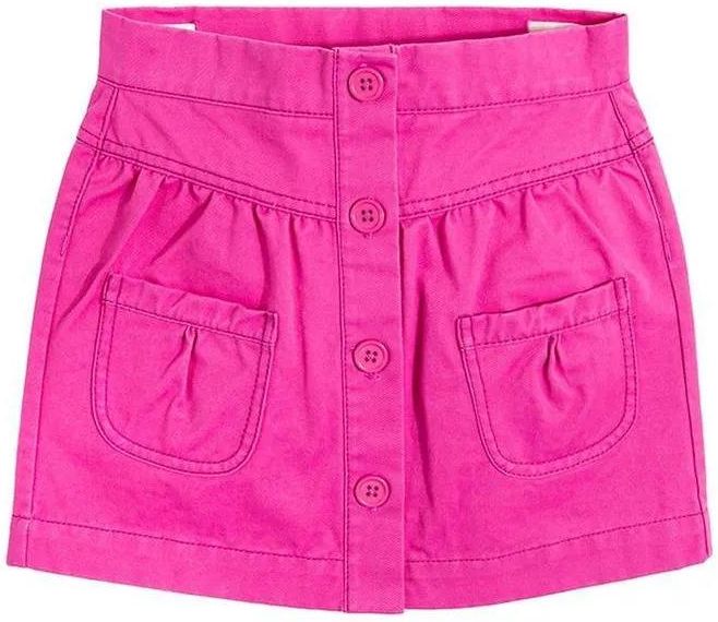Spódnica dla dziewczynki: - kolor: różowy - zapięcie na metalowe guziki z przodu - szeroka, ozdobnie marszczona guma w pasie - kieszenie po bokach Materiał i technologie: - 98% bawełna, 2% elastan Pranie i pielęgnacja: - Prać z podobnymi kolorami w temperaturze do 40° C. - Prać i prasować po lewej stronie.