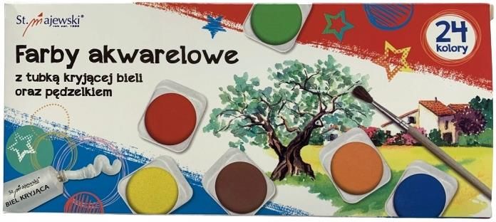 St. Majewski Farby Akwarelowe 24 Kolor Kryjąca Biała Pędzelek (5903235711633) Płock