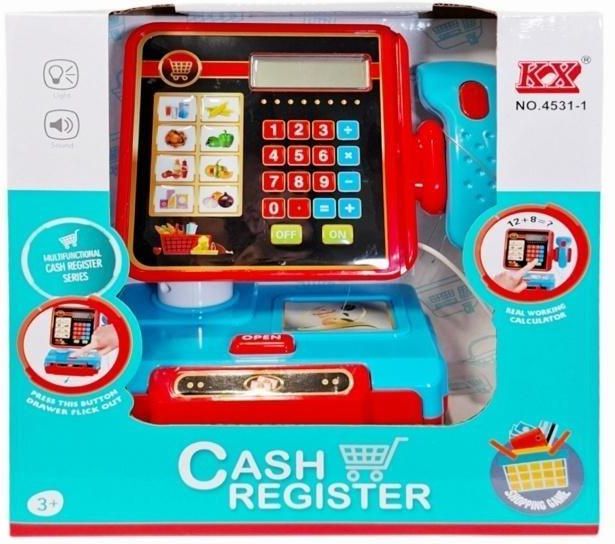 Zabawka kasa sklepowa z przyciskami, skanerem i otwieraną szufladą na pieniądze. Zawiera funkcję kalkulatora. Kasa wydaje dźwięki. Zapakowana w kartonowe pudełko. Zabawka przeznaczona dla dzieci od lat 3. Podane wymiary stanowią wymiar opakowania. Wiek: 3+Producent/osoba odpowiedzialna za bezpieczeństwo produktuKUKURYKU Julia PogorzelskaEKONOMICZNA 442-271 CZĘSTOCHOWAoffice@kukuryku.co34 340 11 50