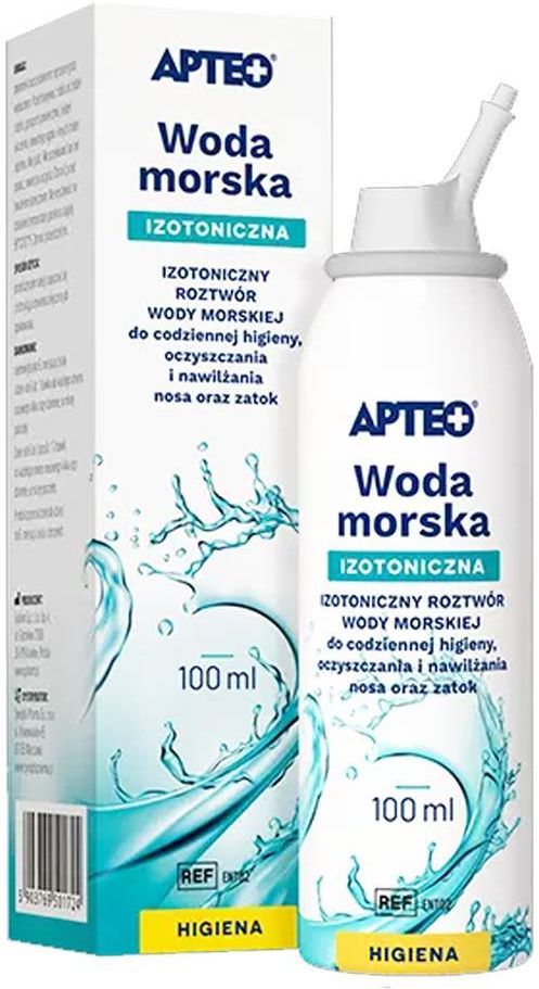 Wyrób medyczny Apteo, woda morska izotoniczna, 100 ml Woda Morska Izotoniczna 100 ml jest przeznaczona do codziennej higieny i oczyszczania nosa oraz zatok, pomagając utrzymać ich prawidłowe funkcjonowanie u niemowląt, dzieci i dorosłych. Skutecznie nawilża suchą błonę śluzową, wspomaga leczenie …