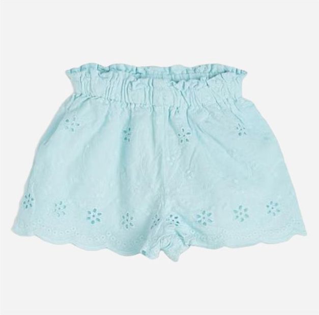 Szorty dla dziewczynki Materiał i technologie: - 100% bawełna (gramatura 150 g/m2) - haft angielski - 100% bawełna (gramatura 220 g/m2) Pranie i pielęgnacja: - Prać w temperaturze do 40 °c, proces łagodny - Nie bielić - Nie suszyć w suszarce bębnowej - Prasować w temperaturze do 150 °c - Nie czyścić chemicznie - Prać i prasować po lewej stronie - Nie prasować ozdób - Prać z podobnymi kolorami - Trzymać z dala od ognia.