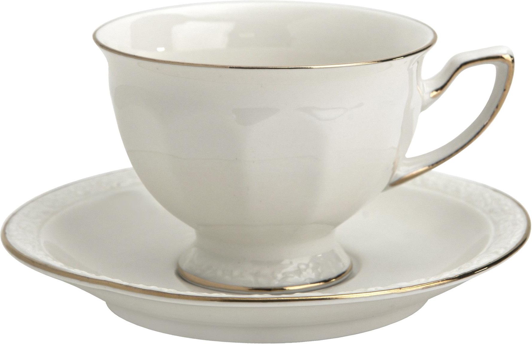 Porcelanowy zestaw 2 filiżanek ze spodkami Anthony. Kolekcja Anthony wykonana jest z porcelany renomowanej marki Veroni, charakteryzującej się elegancką i naturalną mleczną barwą z subtelnym połyskiem, a także wyjątkową wytrzymałością. Eleganckie filiżanki na stopce w odcieniu mlecznej bieli, ozdobiona wypukłym motywem na stopce oraz brzegach spodka. Filiżanki cechuje oryginalnie wyprofilowane uszko, a całość subtelnie akcentuje złota linia wykończenia. Podając kawę w takiej filiżance, zachwycisz gości takim podaniem. Zestaw zawiera 2 x Filiżanka o pojemności producenta 220 ml (Pojemność filiżanki mierzona jest do krawędzi naczynia) 2 x Spodek o średnicy 15,5 cm Ozdobne pudełko Całość zapakowana jest w oryginalne, zdobione pudełko. Stanowi idealny pomysł na gotowy prezent zarówno dla kobiety i mężczyzny, a także podarunek dla szefa czy nauczyciela, również jako podziękowanie. Produkty posiadają różne pudełka. Towar wysyłany jest losowo. Specyfikacja: Marka: Veroni Materiał: porcelana New Bone China Kolor: kremowo-biały, złoty Zmywarka: Nie Mikrofala: Nie Wymiary filiżanki: 9,5 x 12 x 7 cm Wymiary spodka: 15,5 x 2cm Należy pamiętać, że rzeczywiste kolory produktów, odcienie porcelany oraz detale mogą się nieznacznie różnić od tych ukazanych na zdjęciach na naszej stronie internetowej, co może być spowodowane warunkami fotografowania lub ustawieniami monitora.