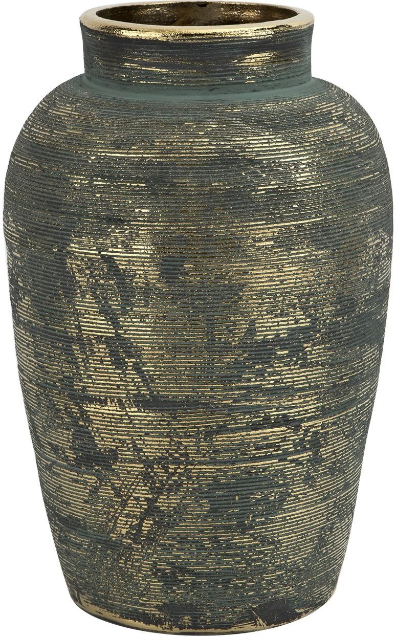 Wazon Dekoracyjny Ceramiczny | 31 cm | Złoto-Niebieski | Loftowy Styl Vintage Dodaj charakteru swoim wnętrzom dzięki temu wyjątkowemu wazonowi ceramicznemu w klimacie vintage! Ręcznie wykończona powierzchnia łączy złoty połysk z przecieranym niebieskim akcentem, tworząc unikalną fakturę inspirowaną estetyką loftu, retro i industrialnych aranżacji. Kluczowe cechy produktu Wymiary: 31 × 20 × 20 cm – klasyczny kształt amfory z nowoczesnym wykończeniem Waga: 4,38 kg – masywna, stabilna forma z ceramiki Kolorystyka: efektowne połączenie złota i przetartego niebieskiego – każdy egzemplarz ma unikalny charakter Materiał: wysokiej jakości ceramika glazurowana Zastosowanie: idealny jako dekoracja, do suchych kompozycji, gałązek lub jako akcent solo ? Świetnie sprawdzi się w salonie, jadalni, biurze, hotelu czy stylowej witrynie sklepowej. 🌿 Doskonale komponuje się z wnętrzami w stylu industrialnym, eklektycznym, rustykalnym oraz boho. 🛒 Wprowadź wyjątkową atmosferę do swojego wnętrza – zamów już dziś! 🎁 Idealny na prezent – elegancki i ponadczasowy.