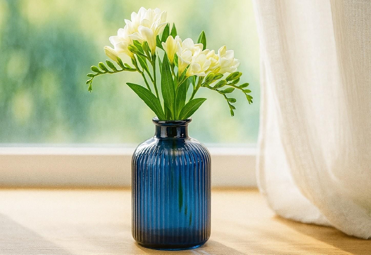 Ryflowany Wazon szklany o wysokości 23 cm. Ścianki naczynia mają ryflowaną formę ścianek, a struktura wyczuwalna jest w dotyku. Wazon przepuszcza lekko światło - można podejrzeć zawartość wewnątrz naczynia. Wazon idealnie nadaje się do kwiatów ciętych, jak i sztucznych. Intensywna i jednocześnie …