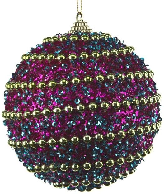 Urocza bombka o bogatym zdobieniu zachwyca blaskiem i elegancją. Jej powierzchnia pokryta jest drobnymi cekinami w odcieniach fuksji i turkusu, ozdobiona delikatnymi, złotymi koralikami ułożonymi w regularne pasy. Dzięki temu bombka pięknie połyskuje w świetle choinkowych lampek, wprowadzając do wnętrza wyjątkowy, świąteczny klimat. Zawieszkę można wykorzystać na wiele sposobów – nie tylko jako tradycyjną ozdobę na choince, ale również jako efektowny element dekoracyjny w innych miejscach domu. Doskonale sprawdzi się w stroikach, bukietach, wiankach czy kompozycjach stołowych. W towarzystwie innych bożonarodzeniowych ozdób prezentuje się niezwykle elegancko i dodaje wnętrzu ciepła oraz blasku. Mieniąca się bombka to idealny, świąteczny akcent, który przyciąga uwagę i wprowadza atmosferę radości. Dostępna jest także w innych wariantach kolorystycznych – skompletuj je wszystkie i stwórz zachwycającą, pełną blasku dekorację, która oczaruje Twoich bliskich. Nic tak nie dodaje uroku we wnętrzu jak przemyślane drobiazgi. Wymiary: wys. 10 cm, szer. 10 cm, dł. 10 cm Cena dotyczy kompletu 2 sztuk. Zdjęcie aranżacyjne ma charakter poglądowy. Prezentowana aranżacja może zawierać elementy dekoracyjne niewchodzące w skład zestawu. Szczegóły dotyczące zawartości znajdują się w opisie produktu.